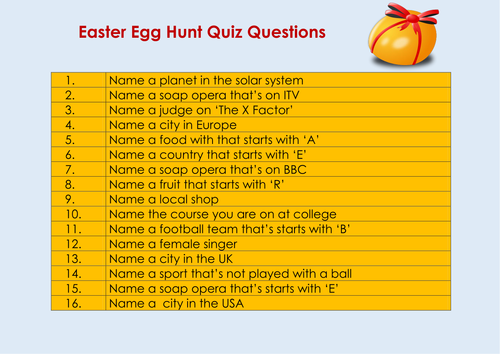 Egg Trivia Questions : There are no spelling or fill in the blank questions.